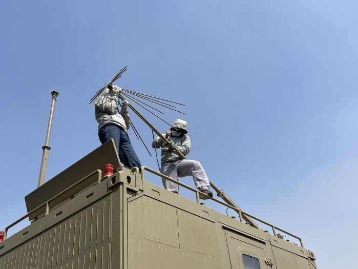 在非洲的沙漠大地上,電科萊斯某海外項目團隊成員為了做好用戶設備維護,在室外溫度40℃、設備艙頂50℃的高溫環境下開展作業。迎高溫、趕任務、保交付,他們在海外詮釋中國電科人的勇氣、責任與擔當。