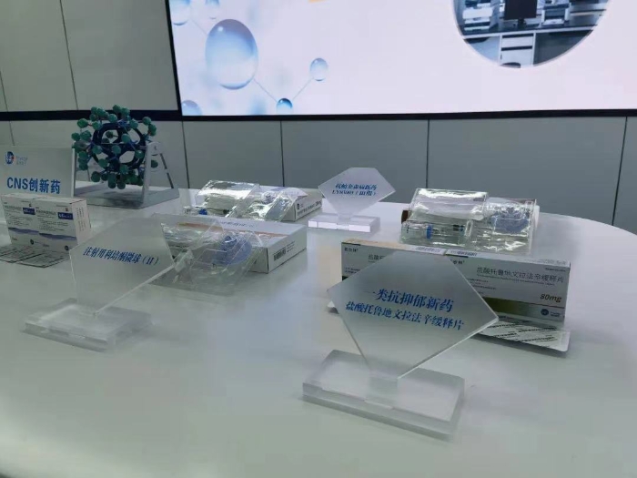 石家莊市國際生物醫藥園規劃展館內展出的部分藥品。 邵玉姿 攝