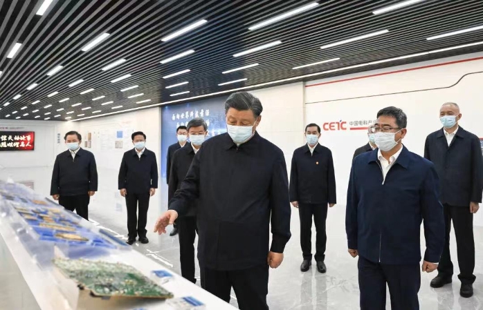 5月12日上午,習近平總書記來到位于石家莊市的中國電科產業基礎研究院考察調研,了解企業發展歷程及產品研發、加強軍民融合發展、提升自主保障能力建設等情況。