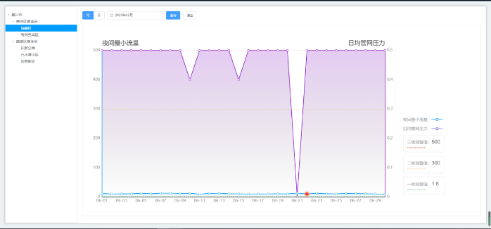 智慧水務云平臺可以通過先進的漏損定位算法和DMA的夜間最小流量,能夠及時發現漏損并精準提供漏損位置信息,自動判斷、分析各DMA是否泄漏以及當前泄漏水平,為制定檢漏方案提供依據。在出現停斷水或爆管等突發事件時,通過智慧水務云平臺的漏損定位,幫助實現排查縮小范圍,減輕一線工作人員排查難度,減少居民停斷水時間。