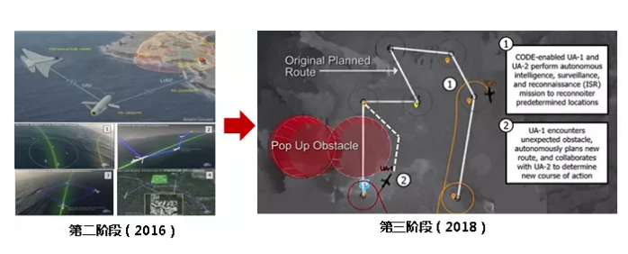 •   第三階段從2018年1月開始,測試使用6架真實無人機以及模擬飛機的協同能力,實現單人指揮無人機小組完成復雜任務。