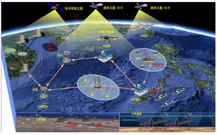 面對海洋綜合感知網絡信息體系的快速發展,當前的海洋通信網絡無法適應業務全面拓展的需求,亟需按照“空、天、岸、海、潛”五位一體的多元異構接入、多網系融合和多元業務承載的思路,發展新型海洋通信網絡架構,解決全方位的隨遇接入、統一組網和按需服務等問題。